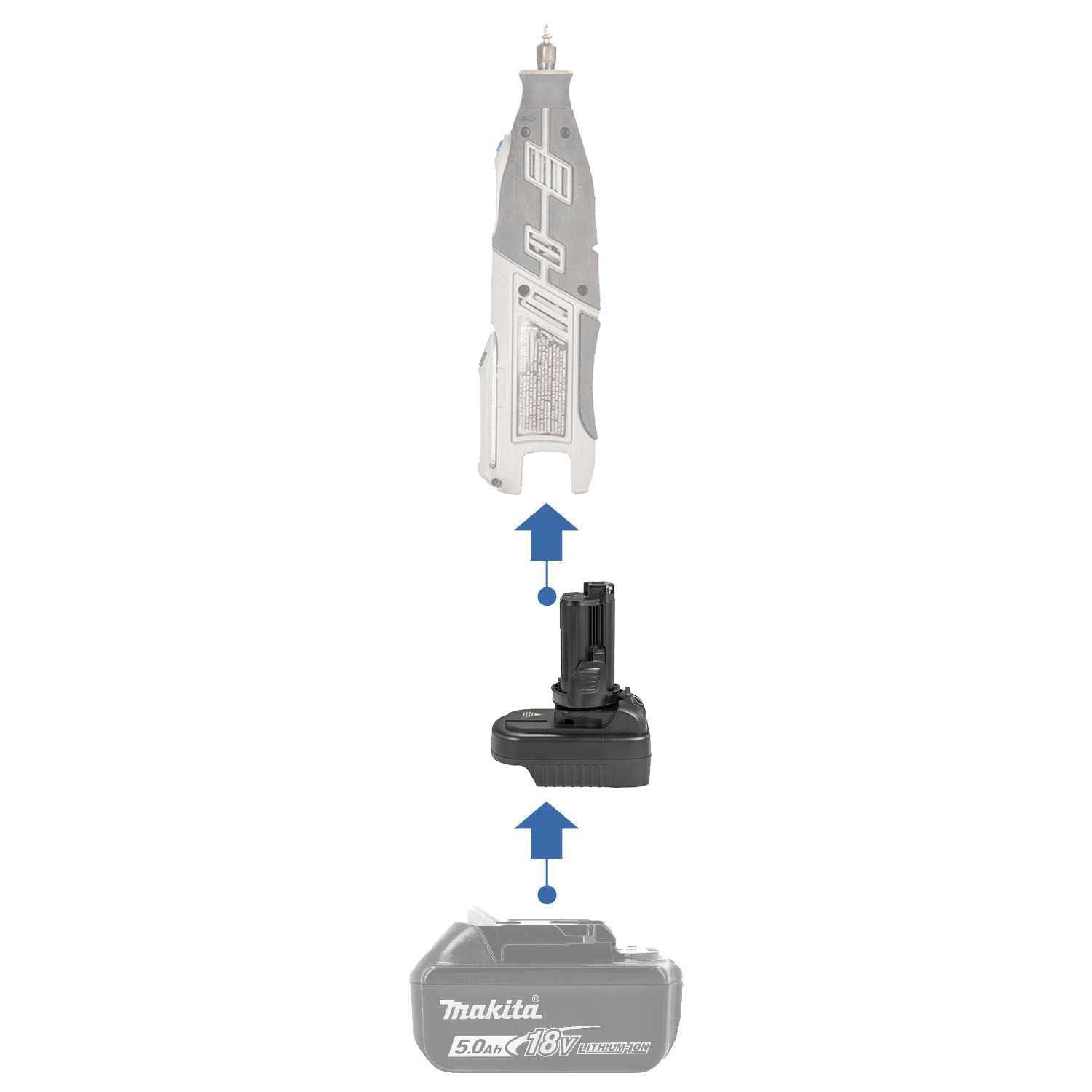 - Use your Makita 18V batteries to run Bosch & Dremel 12V tools