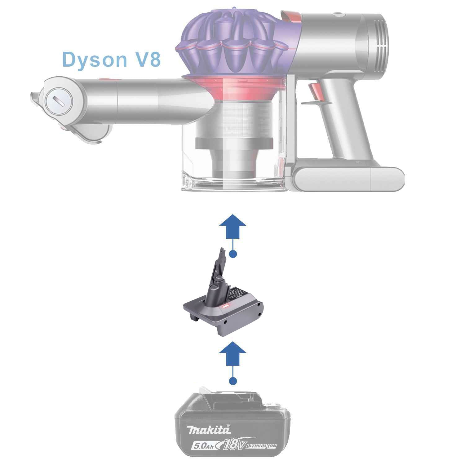 • Verwenden Sie Ihre Makita 18V Batterien mit Dyson V8 Staubsaugern